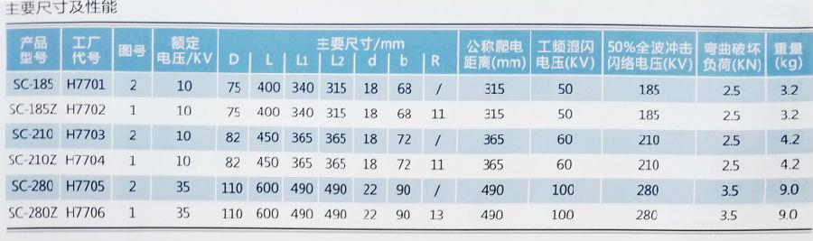 S-胶状式实心瓷横担绝缘子; SC全瓷式实心瓷横担绝缘子